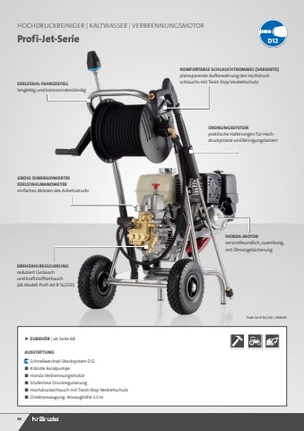 30quadro 899 TST | 610120mittlere quadro-SerieD12HOCHDRUCKREINIGER | KALTWASSER%u25ba ZUBEH%u00d6R ab Seite 68AUSSTATTUNGSchnellwechsel-Stecksystem D12%u25a0Kr%u00e4nzle Axialpumpe%u25a0Totalstop-System mit verz%u00f6gerter Motorabschaltung%u25a0Sicherheitsabschaltung%u25a0Stufenlose Druckregulierung%u25a0Hochdruckschlauch mit Twist-Stop Verdrehschutz%u25a0Reinigungsmittelansaugung %u25a0Feststellbremse %u25a0Wasserkasten: Volumen 10 lKOMFORTABLE SCHLAUCHTROMMEL (TST)platzsparende Aufbewahrung des Hochdruckschlauchs mit Twist-Stop Verdrehschutz ORDNUNGSSYSTEMpraktische Halterungen f%u00fcr Hochdruckpistole und ReinigungslanzenRAMMSCHUTZsch%u00fctzt vor Besch%u00e4digungen der HochdruckpumpeGROSS DIMENSIONIERTES EDELSTAHLMANOMETEReinfaches Ablesen des ArbeitsdrucksROTO-MOLD-CHASSISpraktisch unzerst%u00f6rbares Kunststoff-Geh%u00e4useWASSERKASTENverhindert Sch%u00e4den an der Hochdruckpumpe bei Wassermangel