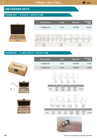 3 56BOHRENINDEXPreise sind unverbindlich empfohlene VK-Preise.LOCHS%u00c4GEN EZYCHANGELochs%u00e4gen EzychangeEin KlickSchneller und einfacher Lochs%u00e4genwechselHM HartmetallBi-MetallR%u00fcckst%u00e4nde lassen sich leicht entfernenmit ZentrierbohrerAufnahme in 3 L%u00e4ngen(70/150/300 mm)F%u00fcr alle Durchmesser von 16 bis 152 mm und eine maximale Tiefe von 44 mm.F%u00fcr Metall, Edelstahl, Aluminium, Holz und KunststoffMit verst%u00e4rkten Z%u00e4hnen in Kobalt auf 4 mm f%u00fcr eine lange Lebensdauer.Aus Hartmetall f%u00fcr eine L%u00e4ngere Lebensdauer.F%u00fcr alle Durchmesser von20 bis 68 mm und eine maximale Tiefe von 60 mm.Schneidet auch Fliesen, Mauerwerk, Stein und Fiberglas.HMHM