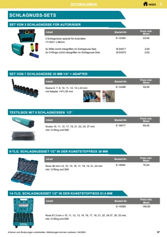 221Flip TopFlip TopINDEXIrrt%u00fcmer und %u00c4nderungen vorbehalten. Abbildungen k%u00f6nnen variieren. 04/2025. SCHRAUBENIMPACT PREMIER - BITSTypStk/PkgBestell-Nr.Preis inkl. MwstT102E-031936,00T152E-032026,00T202E-032186,00T252E-032246,00T302E-032306,00TORXTypStk/PkgBestell-Nr.Preis inkl. MwstPZ12E-031656,00PZ22E-031716,00FlipTop PZ215E-0325228,00PZ32E-031876,00TypStk/PkgBestell-Nr.Preis inkl. MwstPH12E-031216,00PH22E-031376,00Flip Top PH215E-0324628,00PH32E-031596,00TypStk/PkgBestell-Nr.Preis inkl. MwstPH2 Slim2E-031436,00BITS 25 MM C-FORMPOZIDRIVPHILLIPSPHILLIPS SLIM