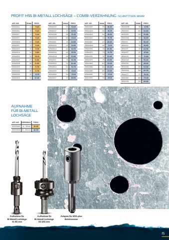 ZENTRIERBOHRERPROFIT EINFACH, UNKOMPLIZIERT UND EXTREM EFFIZIENTPROFIT bietet durch den patentierten Schnellwechseladapter einzigartige Vorteile, welche keine andere Lochs%u00e4ge bieten kann. Durch intensive Forschung konnte die Hartmetall Zahngeometrie nochmals wesentlich verbessert werden und durch eine neueStahlqualit%u00e4t halten die Zentrierbohrer noch h%u00f6here Drehmomente aus. Die hartmetallbest%u00fcckten PROFIT-Lochs%u00e4gen, weisen eine 10 mal l%u00e4ngereStandzeit auf und sind zudem bei Ihrem Sch%u00e4rfeservice nachschleifbar. Profitieren auch Sie, von den einzigartigen Vorteilen von PROFIT. HARTMETALLSGEZHNE3