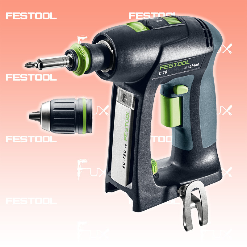 Für volle Flexibilität beim Bohren und Schrauben: vollelektronische Drehmomenteinstellung, CENTROTEC Schnellwechselsystem, Winkel- und Exzentervorsatz sowie Tiefenanschlag lösen jede Bohr- und Schraubanwendung. Die Kombination aus Li-HighPower Akkupack und bürstenlosem und somit wartungsfreiem EC-TEC Motor machen den Akku-Bohrschrauber C 18 leicht, langlebig und ausdauernd. Für einen sorglosen Alltag sind Akkuschrauber und Akkupack mit dem Festool Service rundum abgesichert. Erhältlich in der einzigartigen C-Bauform oder – je nach individueller Vorliebe – in T-Bauform auch als T 18+3.