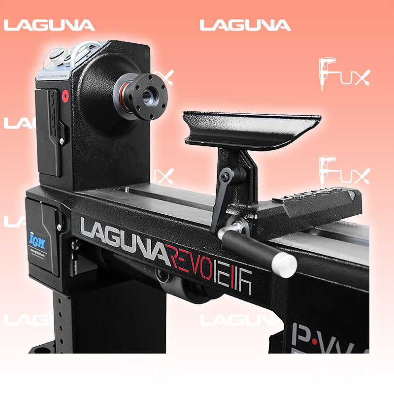 - Die Midi-Drechselbank Laguna 1216 verfügt über ein robustes Design mit einem gusseisernen Spindelstock, einem Reitstock, einem präzise geschliffenen Maschinenbett und einer Werkzeugauflage mit gehärtetem Rand.