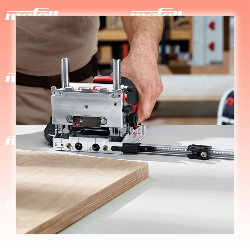 Zu "DuoDübler " von Mafell Mafell DuoDübler DDF 40 MaxiMAX im T-MAX - CH Bestell- und Artikelnummer: 918620 Mit dem DuoDübler DDF 40 wird das Setzen hochpräziser Dübellöcher noch einfacher und effizienter. Er steht für ein extrem breites Einsatzspektrum, leichtes Handling dank neuartiger Ergonomie sowie absolut formschlüssige, stabile Verbindungen. Ob Werkstatt oder Montage: Eine höhere Verbindungsqualität lässt sich mit einer handgeführten Maschine nicht erreichen. Ob Außenecke, Mittelwand oder Lochreihe: Der DDF 40 ermöglicht nicht nur die Präzision einer Stationärmaschine, sondern schafft das mit Standard-Rundholzdübeln auch besonders kostengünstig. Außerdem ist dank Doppellochtechnik schon bei der Montage eine extrem hohe Stabilität gewährleistet. Einsatzgebiet Lochreihen Bohren von Beschlägen Ideal geeignet für Korpusbau, Treppenbau, Werkstatt und Montage Materialeinsatz z. B.: Vollholz, Plattenwerkstoffe Verbindungen jeglicher Art von 3 - 12 mm Vorteile Die Höhe des Schwenkanschlags lässt sich per Drehrad und Skala maßgenau bis 62 mm in der Höhe einstellen. Gängige Maße können per Revolveranschlag voreingestellt werden. Mit den beiden federnden Anschlagstiften in der Grundplatte können Bohrungen im festen Abstand von 15,5 mm zur Werkstückkante gesetzt werden: wiederholbar sowie ohne Ausmessen und Anreißen. Das ergonomisch durchdachte Motorgehäuse mit Griffmulde vorne und Griffhöcker hinten ermöglicht bei jedem Einsatz eine ideale Griffposition und zugleich eine optimale Krafteinleitung. Der Schwenkanschlag wird beidseitig geführt und mit nur einer Einstellschraube zentral geklemmt. Für Gehrungsverbindungen lässt er sich stufenlos von 0 bis 90 Grad schwenken. Raststellungen bei 22,5°, 45° und 67,5° sind vorgegeben. Technische Daten Bohrtiefe 0 – 40 mm Bohrerabstand 32 mm Werkzeugaufnahme Ø 8 mm Werkzeug Ø max.12,2 mm Werkzeug Ø min.3 mm Schwenkbereich 0 - 90 ° Nennleerlaufdrehzahl 8000 min⁻¹ Nennaufnahme 900 W Absauganschluss Ø 29 mm Abmessungen (B x L x H) 145 x 300 x 164 mm Universal-Motor 230 V / 50 Hz Gewicht 2.8 kg Standard-Ausrüstung Zusatzauflage ZA Zusatzanschlag-Set ZAG Absaugstutzen Positionszeiger PAZ Anti-Rutschmatten (265 x 175 mm); Best. Nr. 095063 Leimflasche 250 ml (ohne Inhalt); Best. Nr. 095059 Sechskantschlüssel mit Griff; Best. Nr. 093282 Anschlussleitung 5 m Dübelbohrer-HW 8 mm Dübelbohrer-HW 6 mm VE Rundholzdübel 8 x 30 mm, 200 Stück VE Rundholzdübel 6 x 30 mm, 350 Stück Leimdüse Ø 8 mm; Best. Nr. 095060 Seitenanschlag-Set SA 320; Best. Nr. 206490 Leistenanschlag LA; Best. Nr. 206491 Geliefert im Koffer Zubehör Verbrauchsmaterial Listenpreis CHF 1'259.40 Fuxpreis CHF 1'022.00 inklusive 8.1% MwSt Versand CHF 15.00 Kein Grauimport! Produkt bestellen 1 Stück 2 Stück 3 Stück 4 Stück 5 Stück 6 Stück 7 Stück 8 Stück 9 Stück 10 Stück Alle Angaben ohne Gewähr und solange Vorrat reicht!Wiederverkäufer werden? Produkt als PDF AKTION