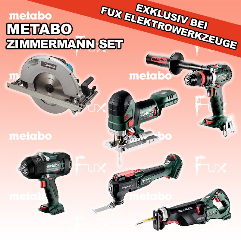 Heute auf dieses Produkt 30% Rabatt! Zu "Zimmermann Set" von Metabo FULL Service: 36 Monate zum Nulltarif für Sie! Weitere Infos zum FULL Service Dieses Produkt ist CAS kompatibel! Weitere Infos zu CAS Sparfux Aktionen FUX SPECIAL EXKLUSIV BEI FUX Metabo Zimmermann SET 19 SOLO Bestell- und Artikelnummer: Zimmermann SET 19 SOLO BS 18 LTX BL Q I Akku-BohrschrauberAkkuspannung 18 V Drehzahl 0-550 / 0-2000 U/min Drehmoment hart / weich 130 / 65 Nm Gewicht (mit Akkupack) 2.3 kgInfos SSW 18 LTX 1450 BL Akku-SchlagschrauberAkkuspannung 18 V Anziehdrehmoment 1450 Nm Werkzeugaufnahme 1/2" Infos SSEP 18 LTX BL MVT Akku-SäbelsägeAkkuspannung 18 V Hubzahl bei Leerlauf 0 - 3.000 /min Gewicht (mit Akkupack) 4.6 kgInfos 5143 R HandkreissägeLeistungsaufnahme 2200 Watt 50 - 130 mm Schnitt-Tiefe bei 90° Leerlaufdrehzahl 2700 U/min Gewicht 14.5 kgInfos MT 18 LTX BL QSL Akku-Multitool Akkuspannung 18 V Schwingzahl bei Leerlauf 8.000 - 20.000 /min Schleifplatte, Maß Eck zu Eck 93 mm Gewicht 1.7 kgInfos STA 18 LTX 150 BL Akku-StichsägeAkkuspannung 18 V Hubzahl 1.000-3.500 /min Gewicht ohne Akkupack 1.9 kgInfos Registriere die in diesem Set vorhandenen Metabo Maschinen auf metabo.ch, und ergattere dir bis zu 5 Gratis Akkus!Zusätzlich offerieren wir zu diesem Set einen Gratis Akku!OHNE AKKUS UND LADEGERÄT Standard-Ausrüstung In diesem Set enthalten: BS 18 LTX BL Q I Akku-Bohrschrauber SSW 18 LTX 1450 BL Akku-Schlagschrauber SSEP 18 LTX BL MVT Akku-Säbelsäge 5143 R Handkreissäge MT 18 LTX BL QSL Akku-Multitool STA 18 LTX 150 BL Akku-Stichsäge Listenpreis CHF 3'054.00 Fuxpreis CHF 2'112.00 inkl. 8.1% MwSt, inkl vRG Versand CHF 25.00 Kein Grauimport! Produkt bestellen 1 Stück 2 Stück 3 Stück 4 Stück 5 Stück 6 Stück 7 Stück 8 Stück 9 Stück 10 Stück Alle Angaben ohne Gewähr und solange Vorrat reicht!Wiederverkäufer werden? Produkt als PDF NEUHEITAKTION 30%