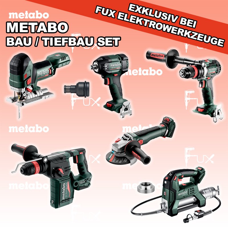 Heute auf dieses Produkt 31% Rabatt! Zu "Bau / Tiefbau Set" von Metabo FULL Service: 36 Monate zum Nulltarif für Sie! Weitere Infos zum FULL Service Sparfux Aktionen FUX SPECIAL EXKLUSIV BEI FUX Metabo Bau / Tiefbau Set 2 SOLO Bestell- und Artikelnummer: Bau / Tiefbau Set 2 SOLO BS 18 LTX BL Q I Akku-BohrschrauberAkkuspannung 18 V Drehzahl 0-550 / 0-2000 U/min Drehmoment hart / weich 130 / 65 Nm Gewicht (mit Akkupack) 2.3 kgInfos STA 18 LTX 150 BL Akku-StichsägeAkkuspannung 18 V Hubzahl 1.000-3.500 /min Gewicht ohne Akkupack 1.9 kgInfos KH 18 LTX BL 24 Q Akku-KombihammerAkkuspannung 18 V Einzelschlagstärke 2.2 J Bohrleistung in Beton 24 mm Gewicht ohne Akkupack 3 kgInfos WVB 18 LT BL 11-125 Quick Akku-WinkelschleiferAkkuspannung 18 V Drehzahl 2.800 - 10.000 / min Ø 125 mm Scheiben Gewicht (mit Akkupack) 2.5 kgInfos SSW 18 LTX 550 BL Akku-SchlagschrauberAkkuspannung 18 V Anziehdrehmoment 550 Nm Werkzeugaufnahme 1/2" Gewicht ohne Akkupack 1,4 kgInfos FP 18 LTX Akku FettpresseAkkuspannung 18 V Maximaler Druck 690 bar Auspressgeschwindigkeit 100 / 290 ml/min Gewicht inkl. Akku 4.4 kgInfos Reduktions Adapter 1/2" auf 1/4" Aufnahme Max. 350 Nm Länge 45 mmInfos Adapter für Lube-Shuttle® 400GAdapter zum Umrüsten von Fettbehälter auf Lube-Shuttle®* Kartusche 400g geeignet für FP 18 LTXInfos Registriere die in diesem Set vorhandenen Metabo Maschinen auf metabo.ch, und ergattere dir bis zu 5 Gratis Akkus!Zusätzlich offerieren wir zu diesem Set einen Gratis Akku!OHNE AKKUS UND LADEGERÄT Standard-Ausrüstung In diesem Set enthalten: BS 18 LTX BL Q I Akku-Bohrschrauber STA 18 LTX 150 BL Akku-Stichsäge KH 18 LTX BL 24 Q Akku-Kombihammer WVB 18 LT BL 11-125 Quick Akku-Winkelschleifer SSW 18 LTX 550 BL Akku-Schlagschrauber FP 18 LTX Akku Fettpresse Reduktions Adapter Adapter für Lube-Shuttle® 400G Listenpreis CHF 2'218.00 Fuxpreis CHF 1'515.00 inkl. 8.1% MwSt, inkl vRG Frankolieferung Kein Grauimport! Produkt bestellen 1 Stück 2 Stück 3 Stück 4 Stück 5 Stück 6 Stück 7 Stück 8 Stück 9 Stück 10 Stück Alle Angaben ohne Gewähr und solange Vorrat reicht!Wiederverkäufer werden? Produkt als PDF NEUHEITAKTION 31%
