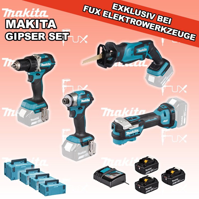 Zu "Gipser Set" von Makita FUX SPECIAL EXKLUSIV BEI FUX Makita Gipser Set 5 Bestell- und Artikelnummer: maGipser Set 5 DDF484ZJ Akku-BohrschrauberAkkuspannung 18 V Drehzahlen 0-500 / 0-2000 U/min Drehmoment hart / weich 54 / 30 Nm Gewicht 1.5 kgInfos DTD173Z Akku-SchlagschrauberAkkuspannung 18 V Anziehdrehmoment 20 / 50 / 170 / 180 Nm Werkzeugaufnahme 1/4" (Innensechskant) Gewicht inkl. Akku 1.2 - 1.5 kgInfos DTM52Z Multifunktions WerkzeugAkkuspannung 18 V Schwingungen 10000 - 20000 min-1 Werkzeugaufnahme Starlock Max System Gewicht inkl. Akku 2.0 kg Infos DJR183Z Akku-SäbelsägeAkkuspannung 18 V Hubzahl 0-3000 / min Schnittleistung Holz 50 mm / Rohre 50 mm Gewicht 1.6 kgInfos 3 x BL 1860 B ( Li-Ion Akku )18 V 6.0 Ah ( Li-Ion Akku ) Infos DC 18 RC Schnell-Ladegerätfür Akkus 14.4 - 18 Volt ( Li-Ion Akkus )Infos MAKPAC Gr. 3Produktabmessung (L x B x H) 377 x 277 x 176 mm Infos Einsatz für DTM52 Einsatz für DTM52 Makpac Koffer Typ C (821551-8) Infos 2 x MAKPAC Gr. 2Produktabmessung (L x B x H) 395 x 295 x 163 mm Infos Einsatz für diverse Schlagschrauber Einsatz für DDF083, DDF483, DHP483, DTD134, DTD137, DTD146, DTD148, DTD152, DTD153, DTD154, DTD155, DTD170, DTD171, DTP131, DTP141, DTS130, DTS131, DTS141, DTW180, DTW181, DTW250, DTW251, DTW284, DTW285Infos Einsatz für DJR183 Einsatz für DJR183 Makpac Koffer Typ B (821550-0)Infos Standard-Ausrüstung In diesem Set enthalten: DDF484ZJ Akku-Bohrschrauber DTD173Z Akku-Schlagschrauber DTM52Z Multifunktions Werkzeug DJR183Z Akku-Säbelsäge 3 x BL 1860 B ( Li-Ion Akku ) DC 18 RC Schnell-Ladegerät MAKPAC Gr. 3 Einsatz für DTM52 2 x MAKPAC Gr. 2 Einsatz für diverse Schlagschrauber Einsatz für DJR183 Geliefert im Koffer Zubehör Listenpreis CHF 1'650.00 Fuxpreis CHF 1'117.00 inklusive 8.1% MwSt Versand CHF 20.00 Kein Grauimport! Produkt bestellen 1 Stück 2 Stück 3 Stück 4 Stück 5 Stück 6 Stück 7 Stück 8 Stück 9 Stück 10 Stück Option: Makita BL 1860 B ( Li-lon Akku ) für CHF 95.- statt CHF 124.-Infos Alle Angaben ohne Gewähr und solange Vorrat reicht!Wiederverkäufer werden? Produkt als PDF NEUHEITAKTION 32%